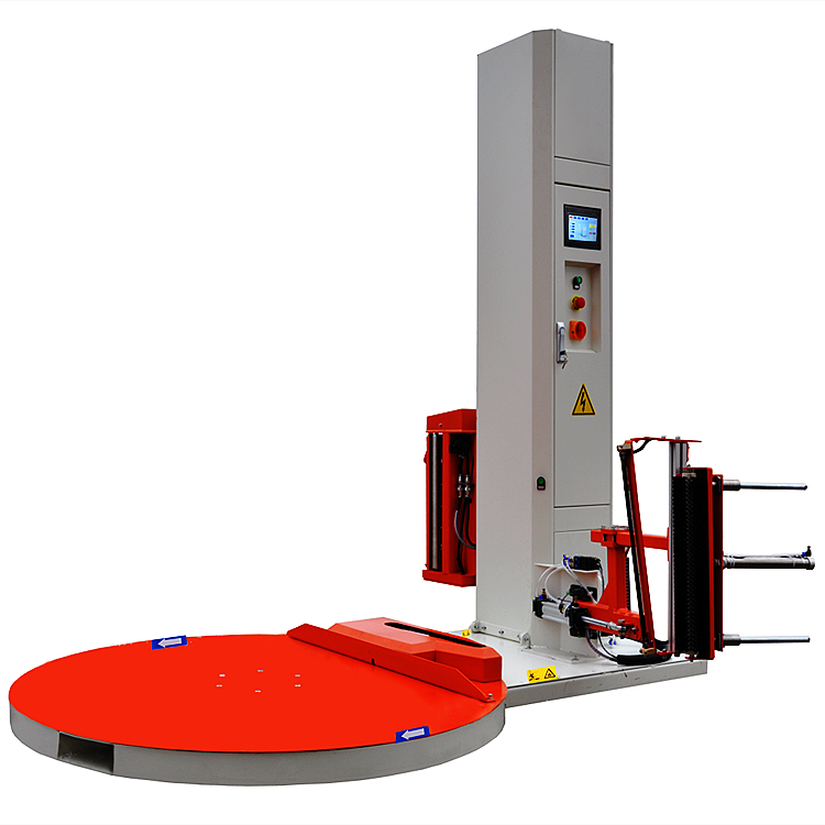 托盤纏繞機是指通過轉臺旋轉帶動托盤貨物轉動,進而實現對貨物纏繞裹包的設備。適用于使用托盤裝運的貨物包裝(如用于大宗貨物的集裝箱運輸及散件托盤的包裝等),廣泛應用于玻璃制品、五金工具、電子電器、造紙、陶瓷、化工、食品、飲料、建材等行業。能夠提高物流效率、減少裝運過程中的損耗。具有防塵、防潮、降低包裝成本等優點。